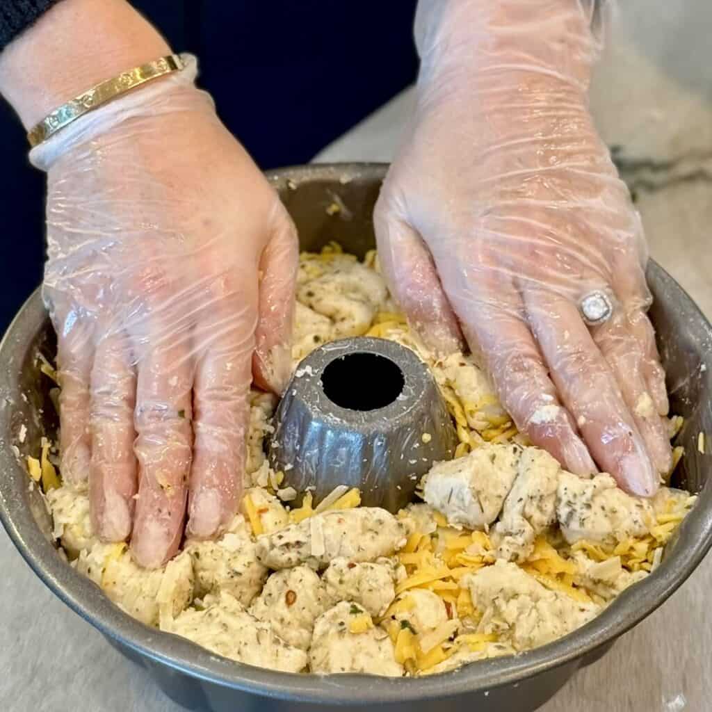 - Layer correctly for the best cheese pull. Be sure to alternate layers of biscuit dough and shredded cheese. This is so crucial to being able to get the best cheese flavor and cheese pull out of every bite.